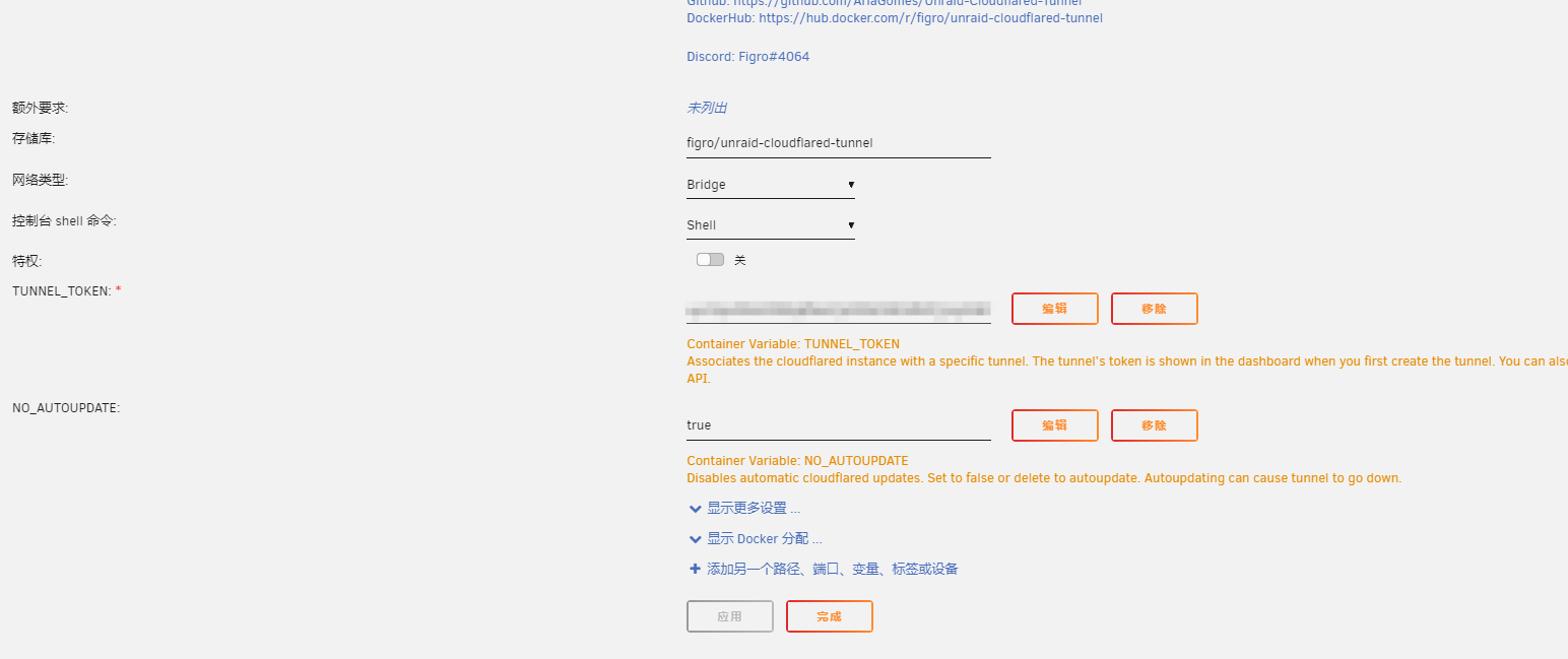 第二步:编辑docker ,配置 token。 在这一步 只需要填写token保存就可以了。
